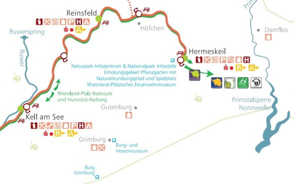Der rund 50 km lange Ruwer-Hochwald Radweg führt vom Moseltal auf die Höhen des Hunsrück. Immer an dem Fluß Ruwer entlang, passiert er auf charakteristischen Streckenabschnitten Rebhänge, Waldgebiete und Weindörfer, sowie verschiedene Ortschaften der Verbandsgemeinden Ruwer, Saarburg-Kell und Hermeskeil.