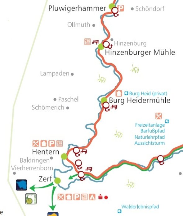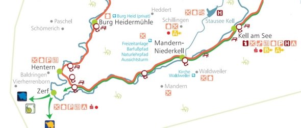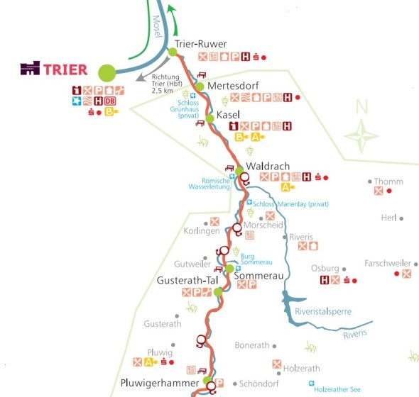 Der Ruwer-Hochwald-Radweg ist in vier Streckenabschnitte unterteilt, die durch unterschiedliche Landschaften geprägt werden.